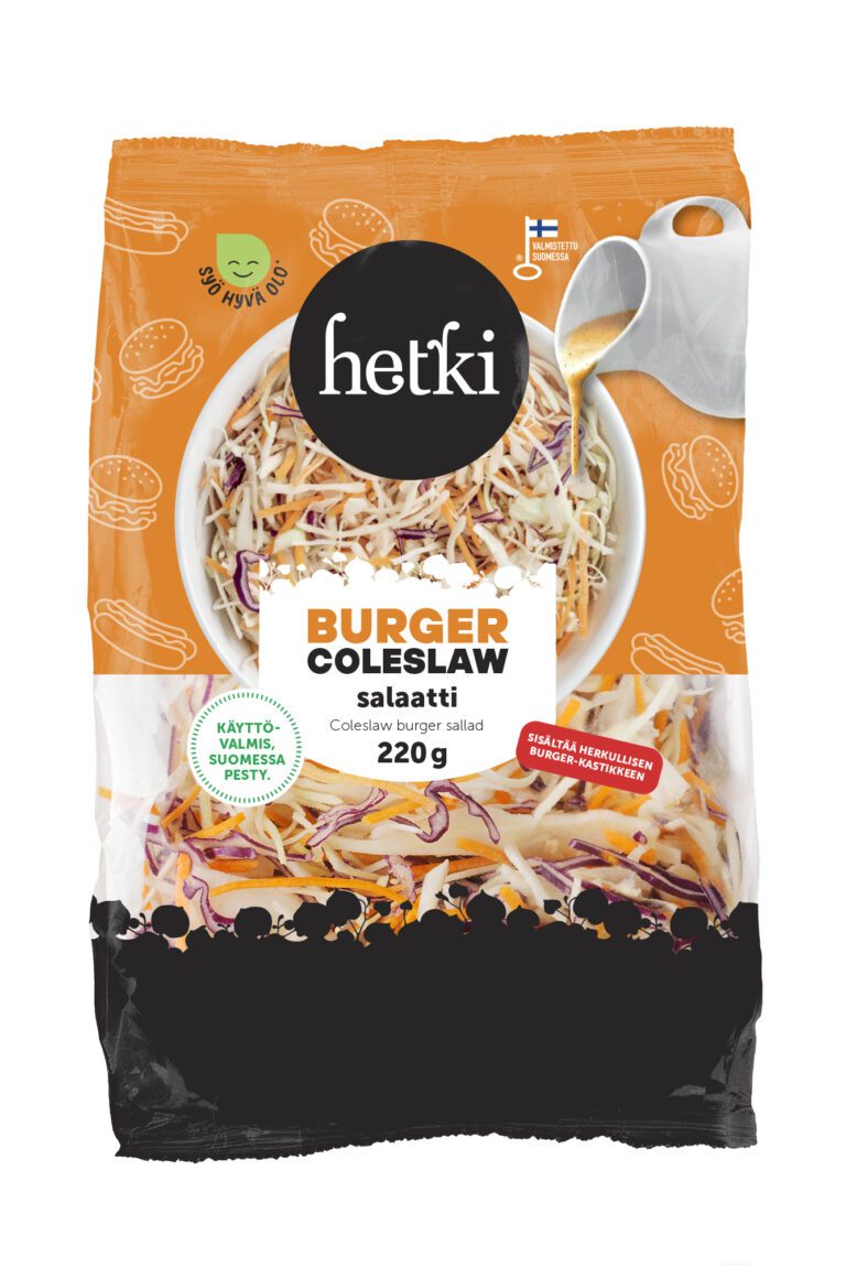 Rapsakka valkokaalta, porkkanaa ja punakaalta sisältävä raastesekoitus, jossa kastikkeena maukas burger -kastike. Erinomainen täytesalaatti, mutta toimii myös lisukesalaattina. Käytä salaattia esimerkiksi hampurilaisten ja hotdogien täytteenä.