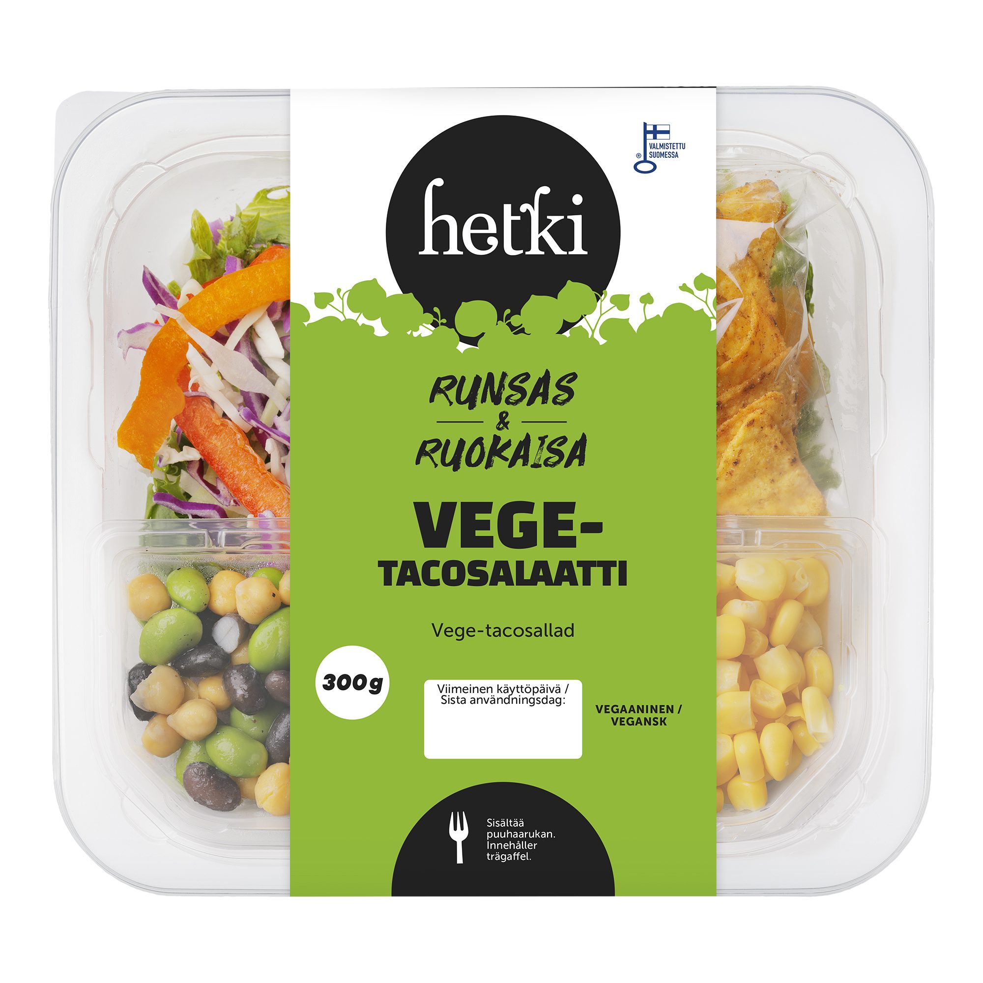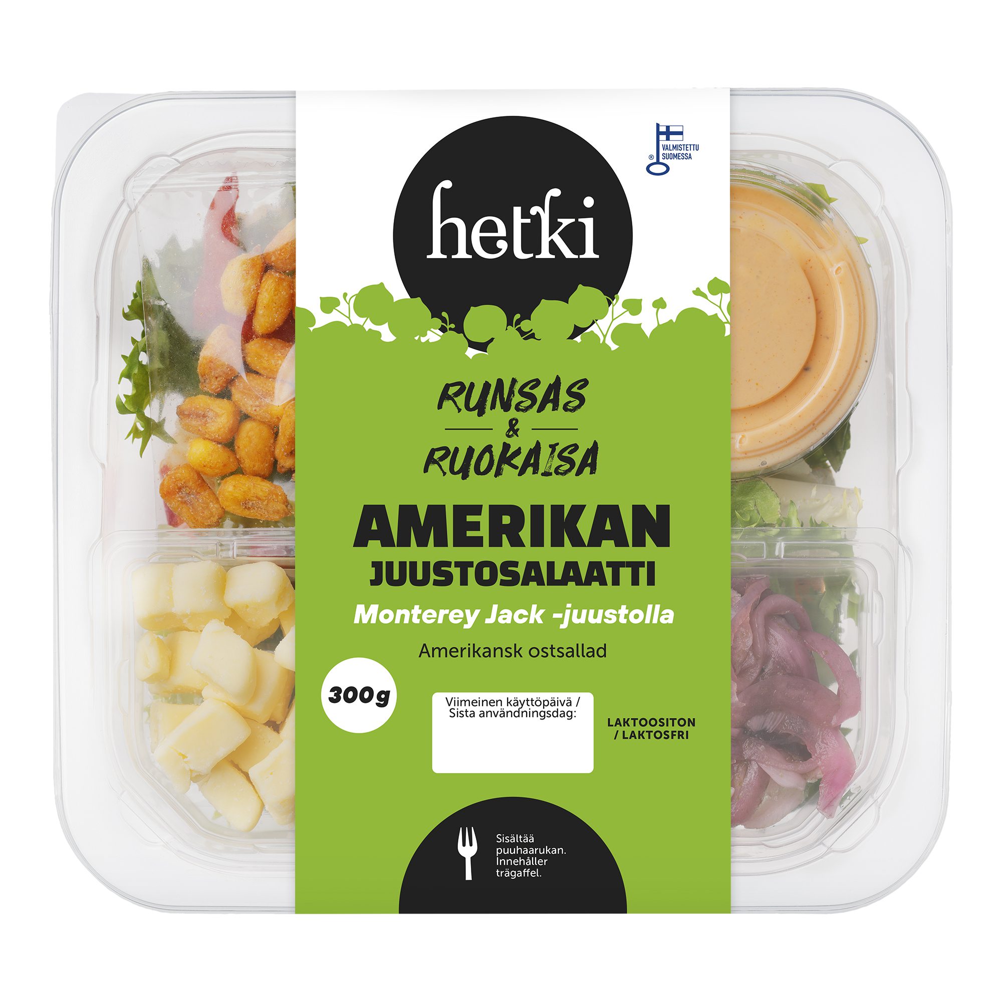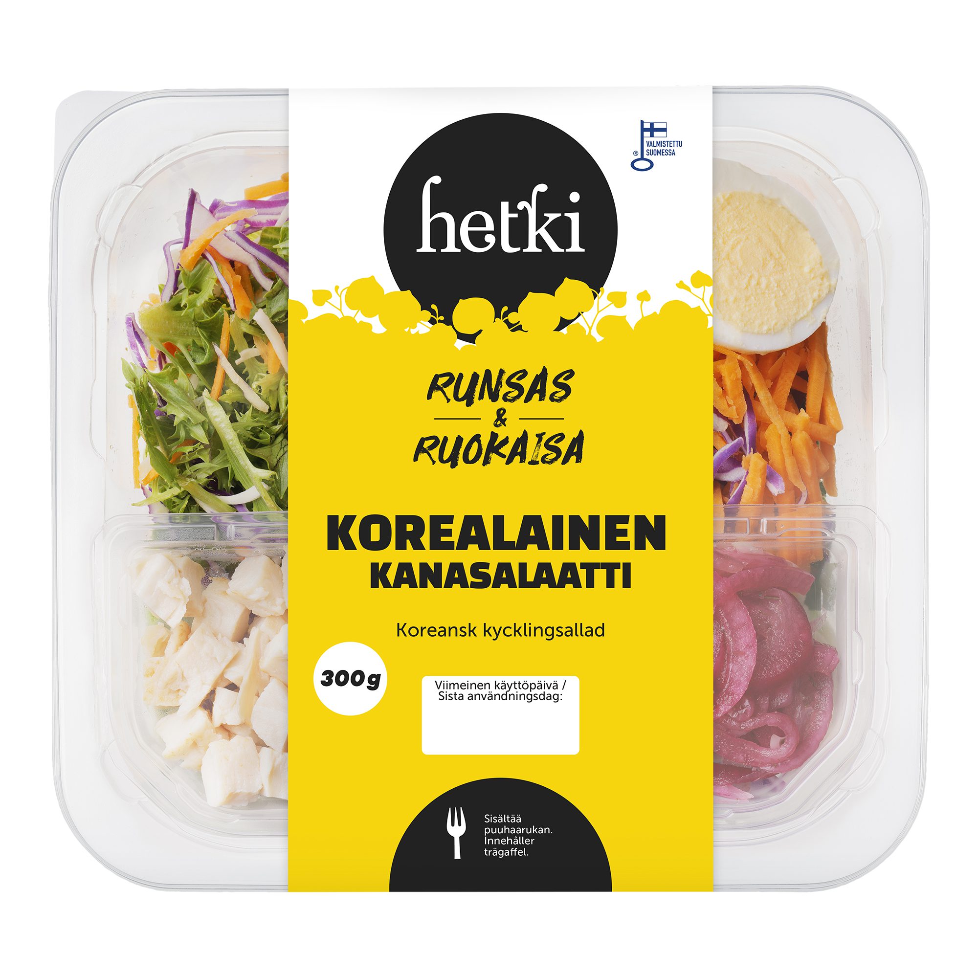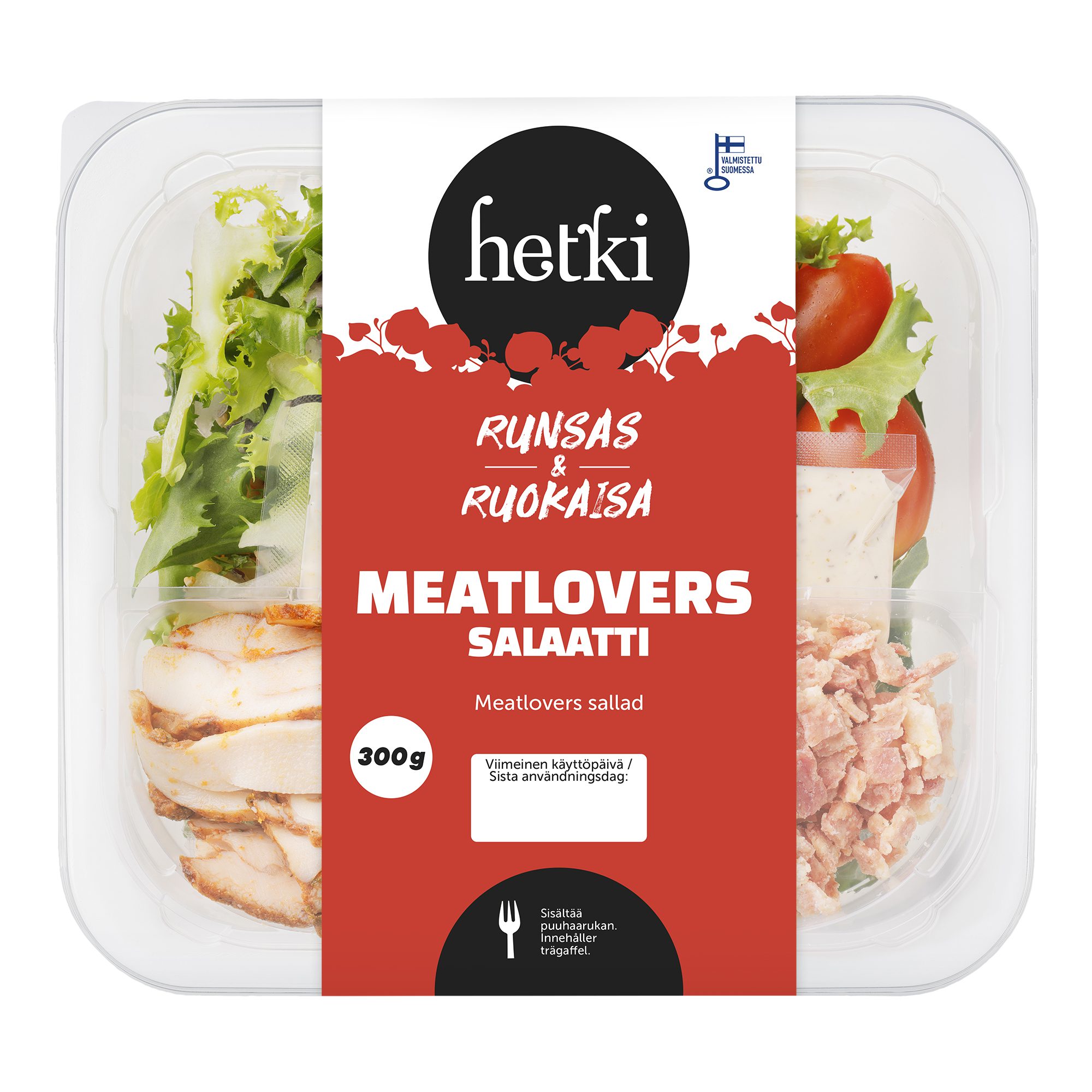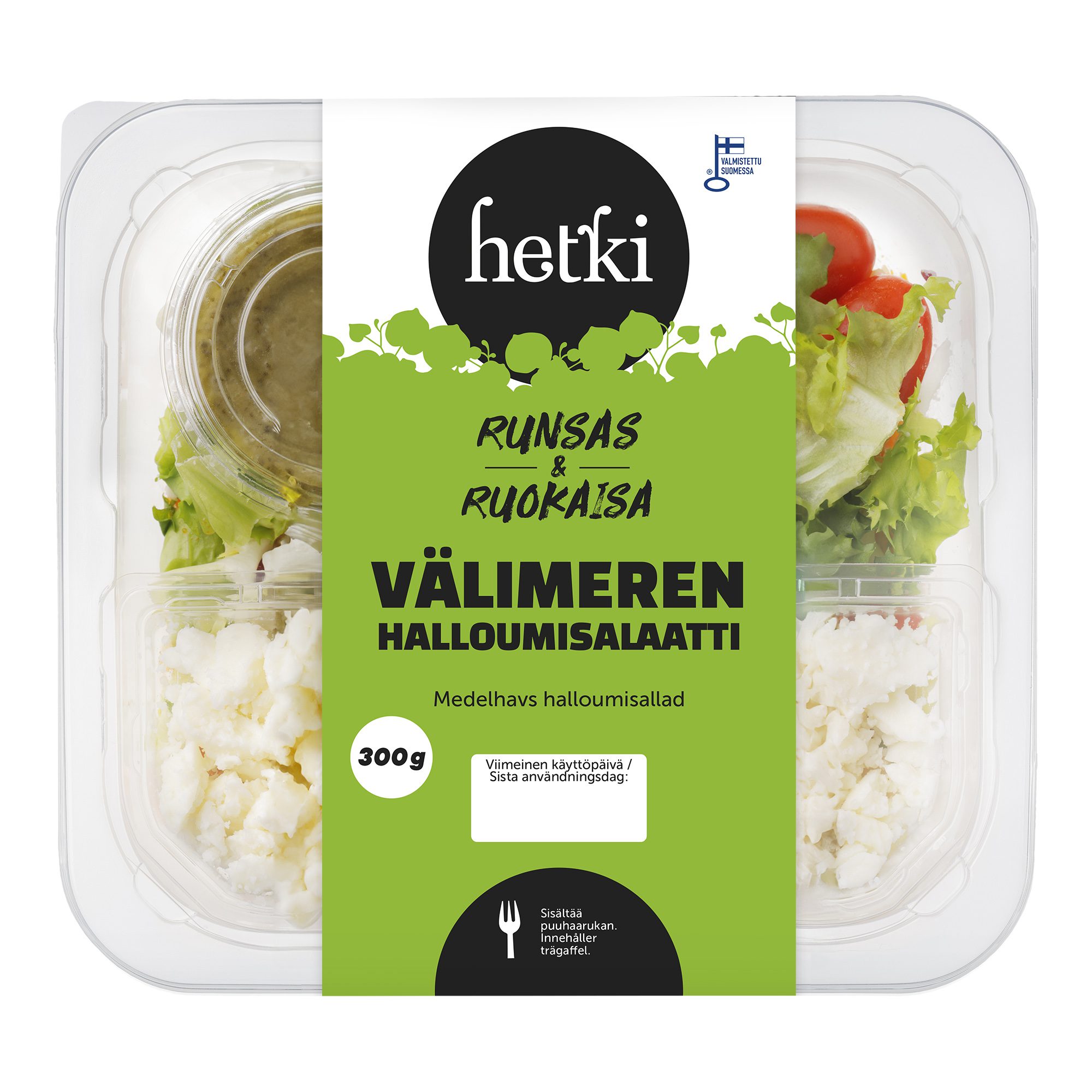 Hetki-salaatit ovat Suomen suosituimipia salaattiaterioita, ja ne ovatkin käteviä eväitä vaikka töihin. Hetki-salaattien suosikkimakuja löytyy myös isommassa 550 gramman pakkauskoossa. Bowlit vievät makumatkalle ympäri maailman kun taas Bistro-salaatit ovat täysipainoisia aterioita. Hetki-salaattien uusin tuoteperhe Ruokaisat salaattiateriat taltuttavat helposti isommankin nälän, kun taas Hetki Arki tarjoaa yksinkertaisia perussalaatteja pienemmässä pakkauskoossa edullisempaan hintaan.